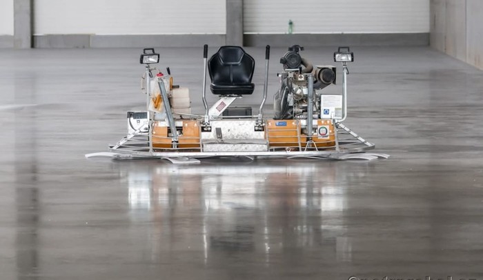 Vibrovaná, strojně hlazená betonová podlaha se vsypem a ochranným lakem